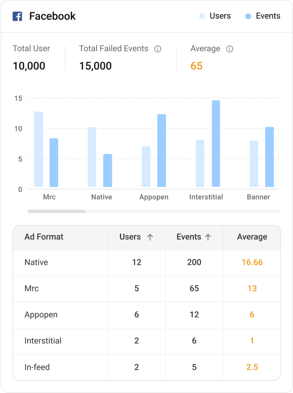 Visualize failure trends by ad formats, platforms, and sessions. Uncover top error reasons and optimize ad placements with actionable diagnostics.