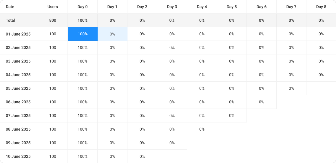 Low retention indicates a drop-off problem — users don't find enough value to come back.